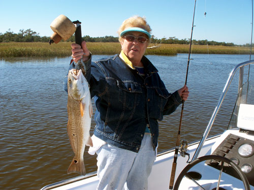 11/17/09 Loretta with a nice red she caught with a live shrimp on a carolina jig.