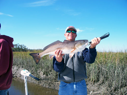 11/29/09 Timmy with a red he caught out of a nice school along the marsh edge.
