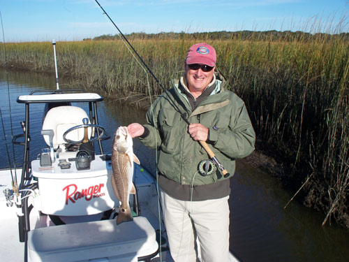 12/1/09 Rick with his first red on fly. He caught several reds and a spec all on the fly rod.